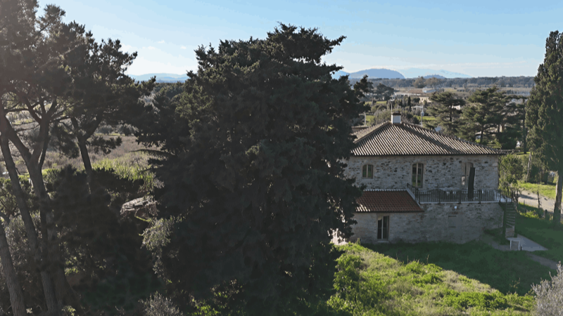 The farmhouse has been restored to operate autonomously: solar heating and electricity, well water for the garden and trees.