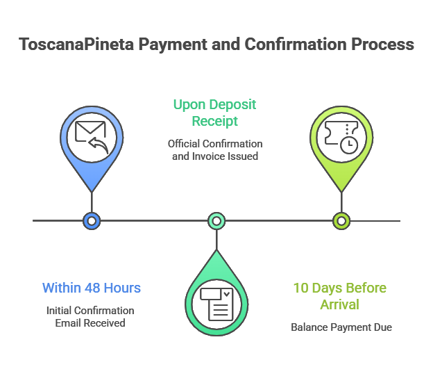 You will receive an email confirming receipt of your request, along with the REVOLUT account number for ToscanaPineta to transfer the deposit.