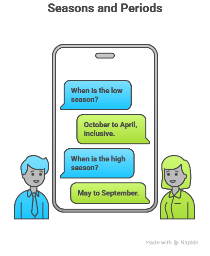 First select your apartment and the season, then the number of nights you want: 2, 3, or 7 nights.